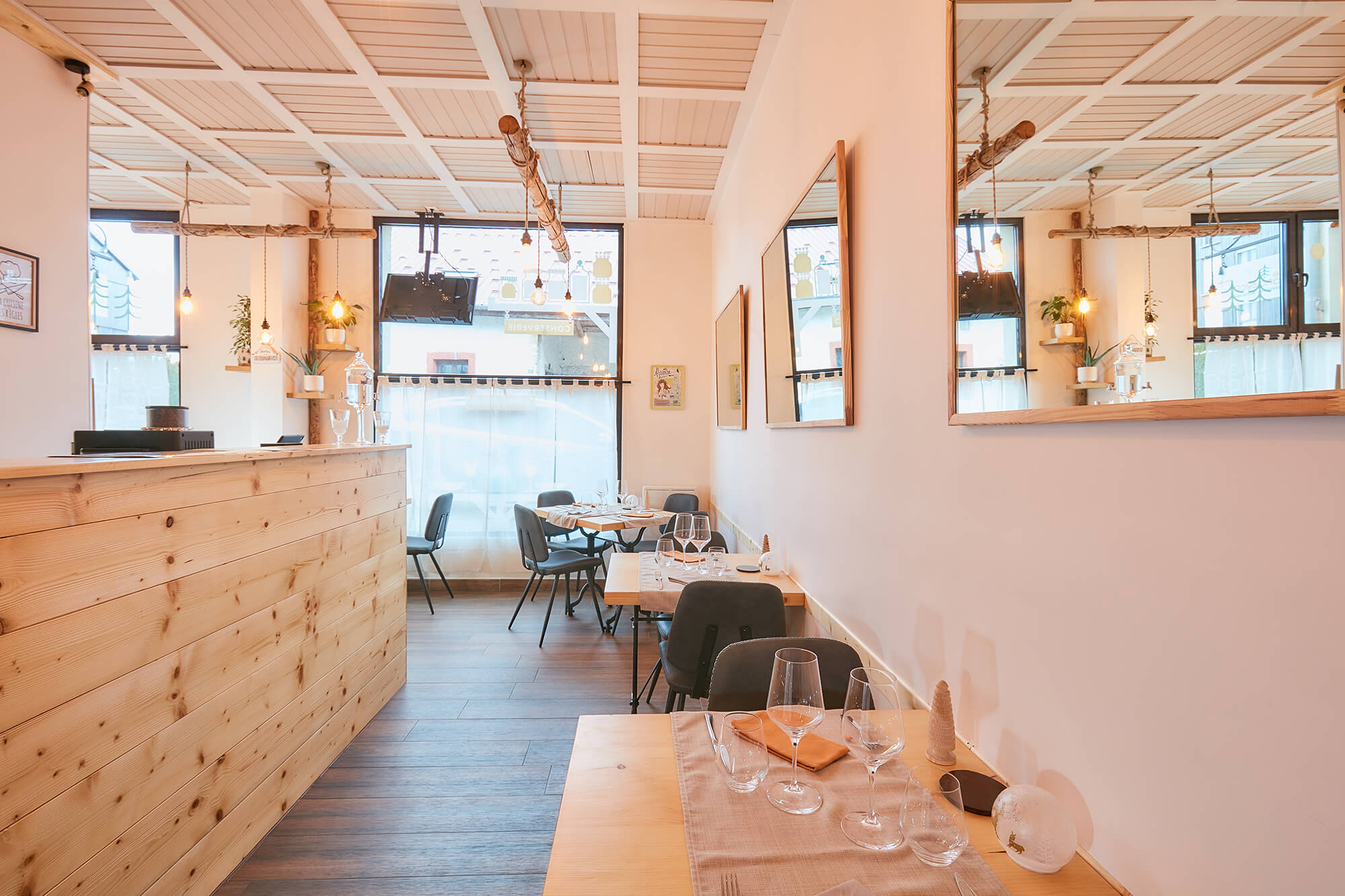 Le restaurant, chaleureux, intimiste et convivial, avec seulement 16 places vous accueille du mercredi au dimanche. Que ce soit le midi avec les menus du jour, ou le soir à la carte, vous trouverez des produits essentiellement locaux et de saison, issus de notre patrimoine gastronomique.